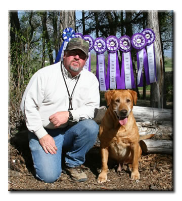 What an awesome achievement for Otter. I am so proud of the Big Dog. I am also very thankful that I was given the opportunity for him to share his life with me. To work with him through out his career. I have never seen a dog give more in so many ways than he did. He earned the distinction of a HOF dog by hundreds if not thousands of hours of effort on his part. He has also made a significant contribution to the breed by producing many oustanding dogs. He has made a difference for Pointing Labs. As a team he instilled a great deal of confidence when ever we ran tests. When we went to the line ,regardless of the venue or the difficulty of the tests, you could see it in his attitude he was coming back with the birds. I would watch his eyes as the birds would go down. He would tell me " Yes I saw them, cut me loose and I will be right back with all of them"! I cant tell you how many times he would line really tuff blinds in training and hunt tests without a whistle. Several times Judges would ask I would mind blowing the whistle at least once next time just to so they could see if I could stop and cast him. Anyone that has run Masters or HRCH tests know just how good that makes you feel to hear something like that from a judge.